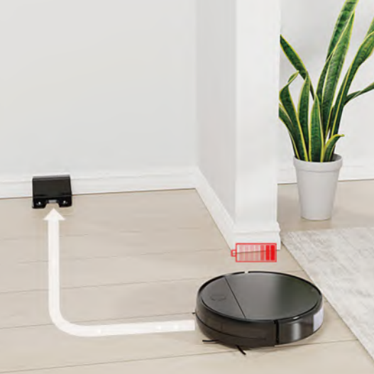 >When battery runs low, automatically goes back toits charging dock for recharge;
